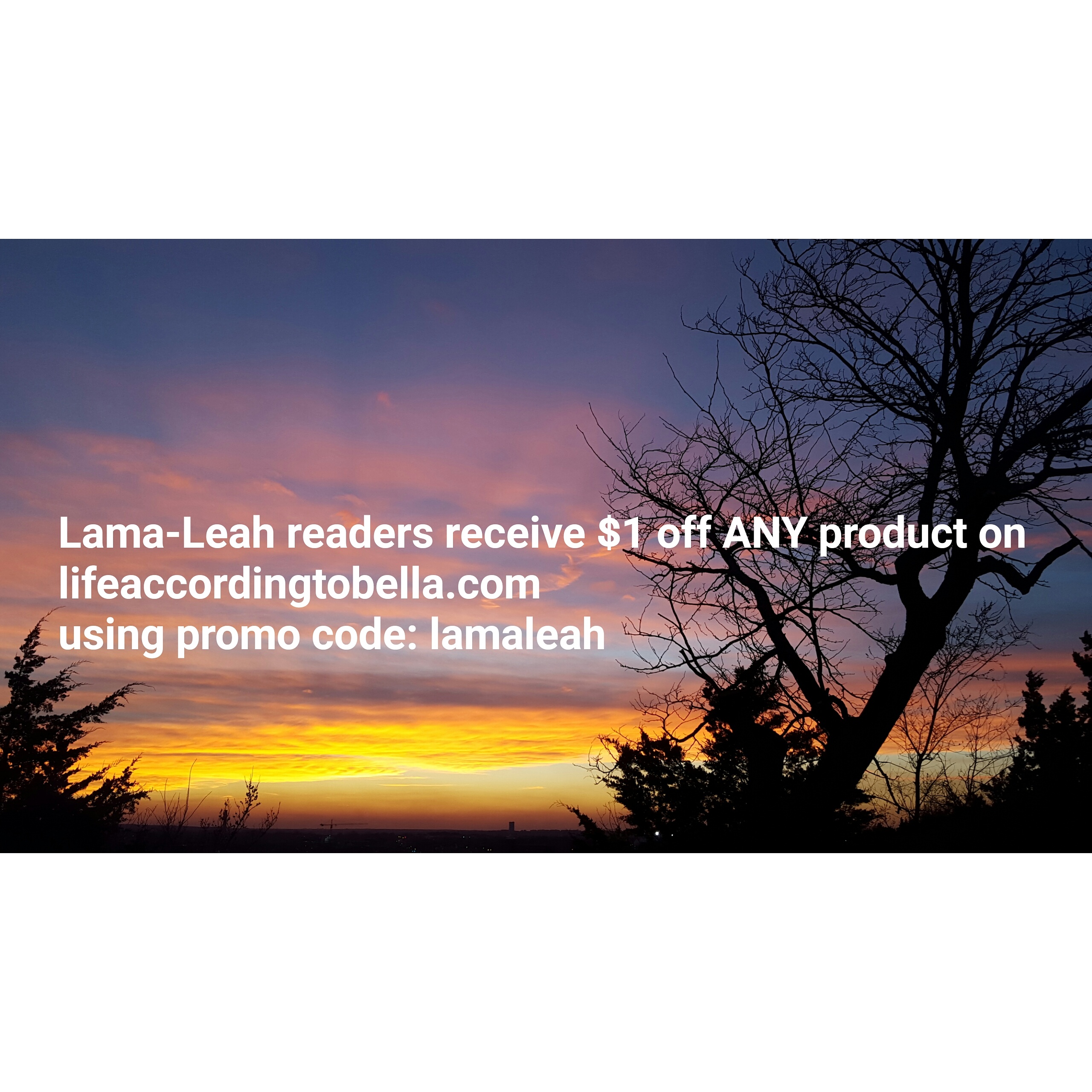 Two years ago I set up my this blog. I never imagined it growing in the ways that it has. I’ve grown as a believer and a writer. As a celebration I have a special promo code for you. The website, lifeaccordingtobella.com is giving Lama-Leah readers $1 off ANY product on their website using promo code: lamaleah